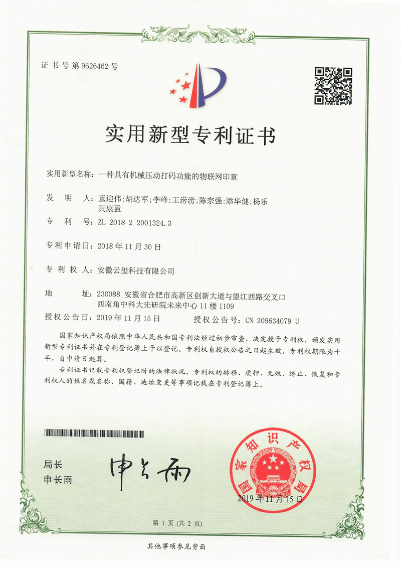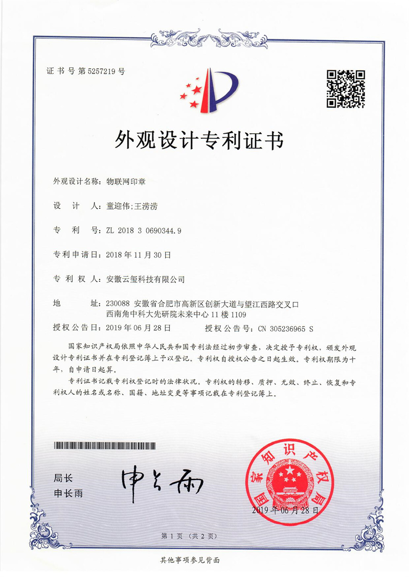 公司原創(chuàng)發(fā)明一體式智能印章技術(shù),引領(lǐng)國內(nèi)外新一代智能印簽創(chuàng)新變革。獲中日韓多項(xiàng)發(fā)明專利,徹底解決了實(shí)體印章和電子印簽管控的社會難題,獲國務(wù)院國資委全國央企熠星二等獎(jiǎng)。公司聯(lián)合國家信息安全產(chǎn)品認(rèn)證中心、公安部三所、信通院、中國印章協(xié)會等,主導(dǎo)起草了行業(yè)首個(gè)智能印章安全認(rèn)證標(biāo)準(zhǔn)和智能印章產(chǎn)品標(biāo)準(zhǔn),引領(lǐng)了智能印章行業(yè)發(fā)展。